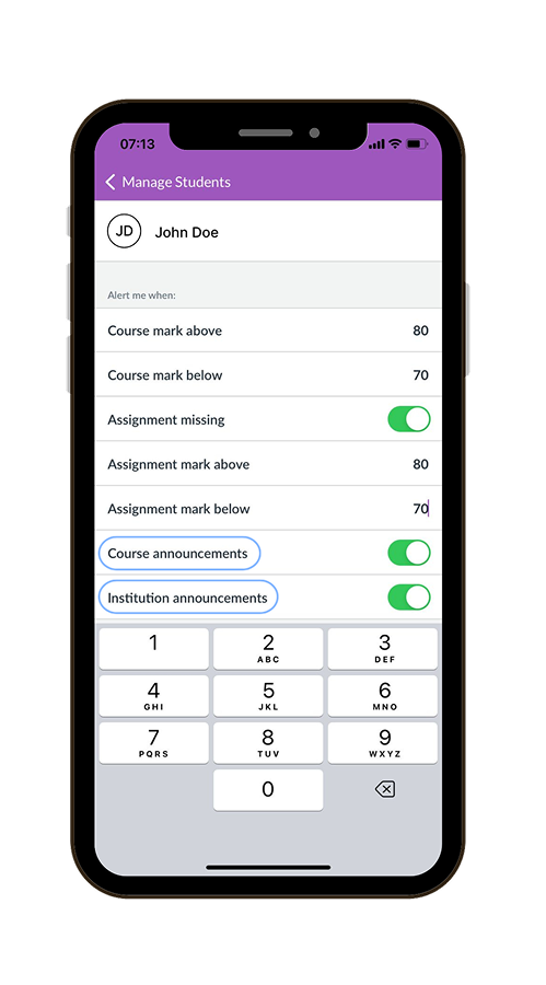 The Canvas Parent App allows you to set personalised notifications so you can get instant updates directly to your phone. If there are important due dates coming up, or your child gets a mark that falls below their normal range, you will know instantly. This means you can check in with your child right away, and solve any issues before they fall too far behind.