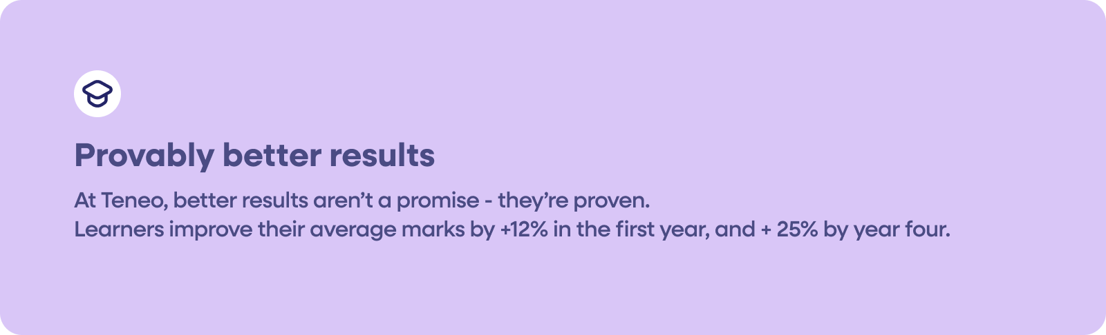 At Teneo we incorporate a parent app that is available to check and monitor 24/7, and has alerts and scheduled interventions to ensure every learner’s progress is closely monitored and available for guardians to view.