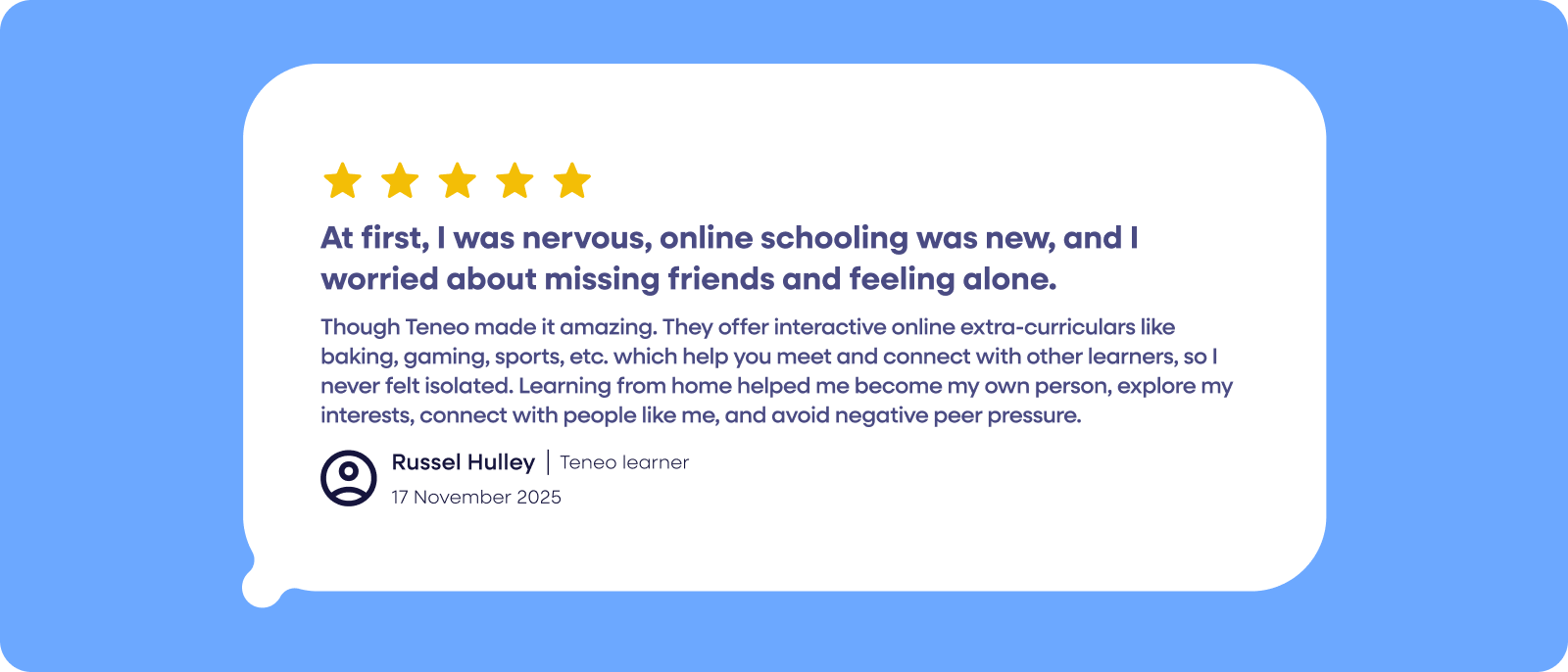 Without having to attend a single in-person class, your child can access schooling that open up their future education options globally. We’ve built Teneo so your child can succeed without long commutes, have the same quality of learning and even meet new friends – be it on the road or at home.