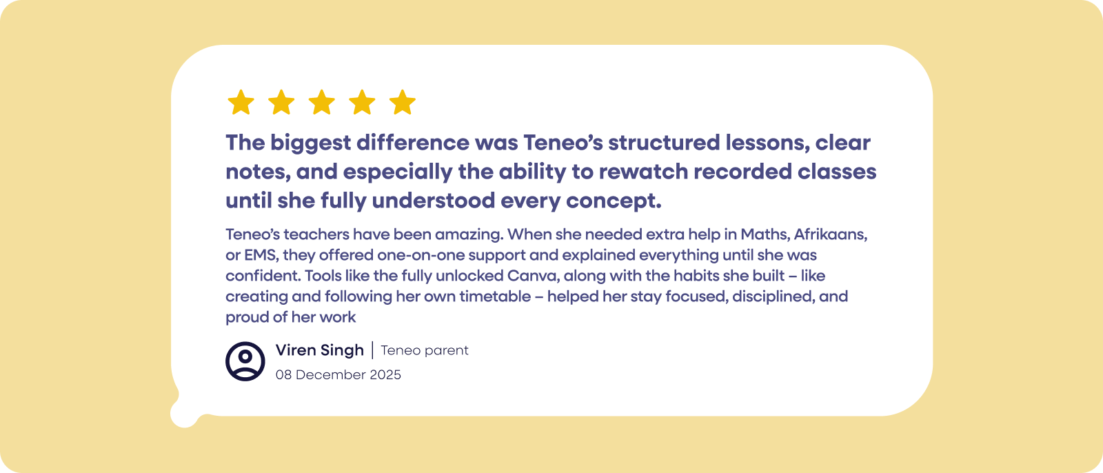 Teneo is rated the no. 1 online school in South Africa by HelloPeter. With 170+ SACE-registered teachers, we have helped more than 3 500 learners matriculate with a National Senior Certificate (NSC), opening the doors to tertiary education and future career opportunities.